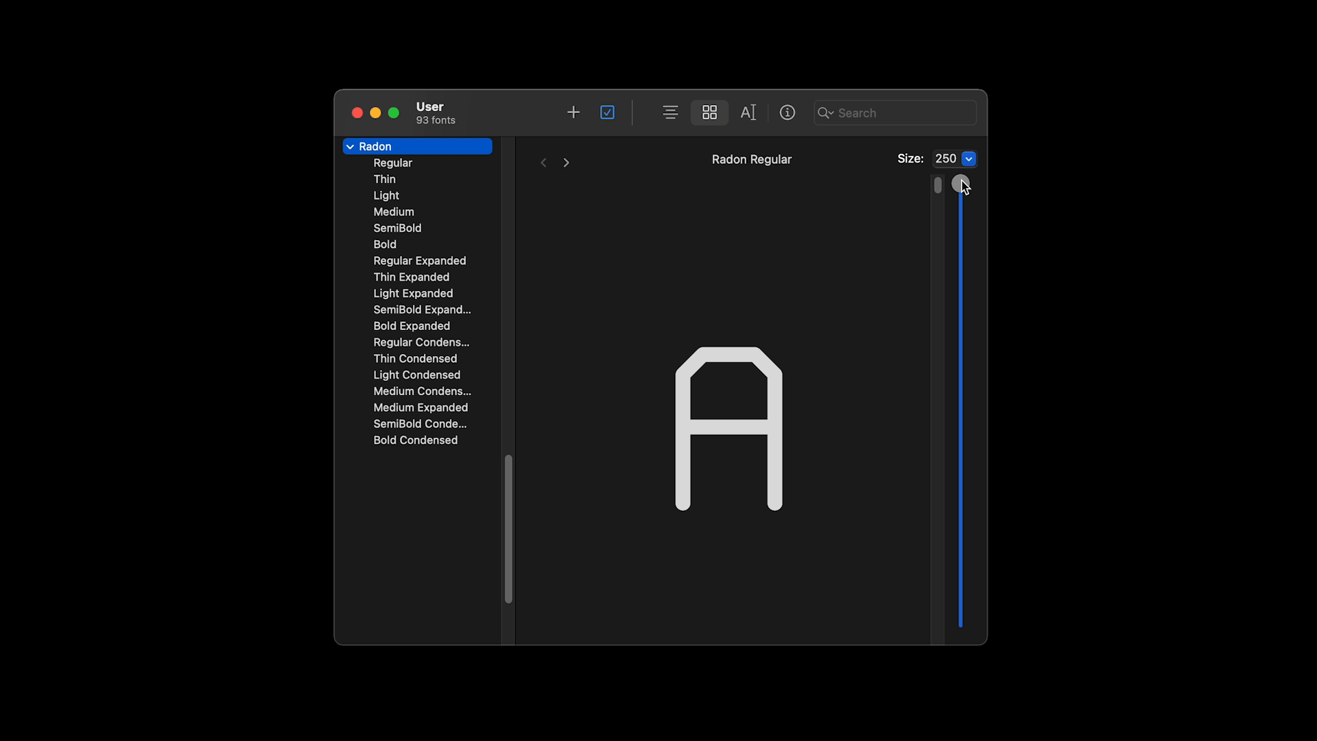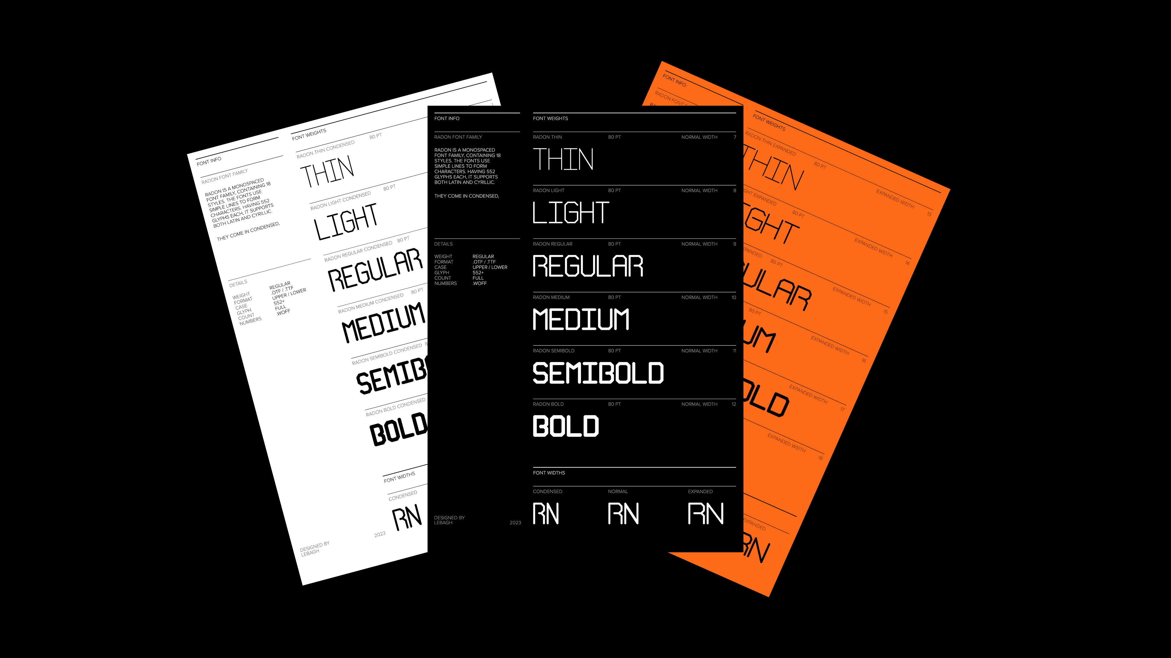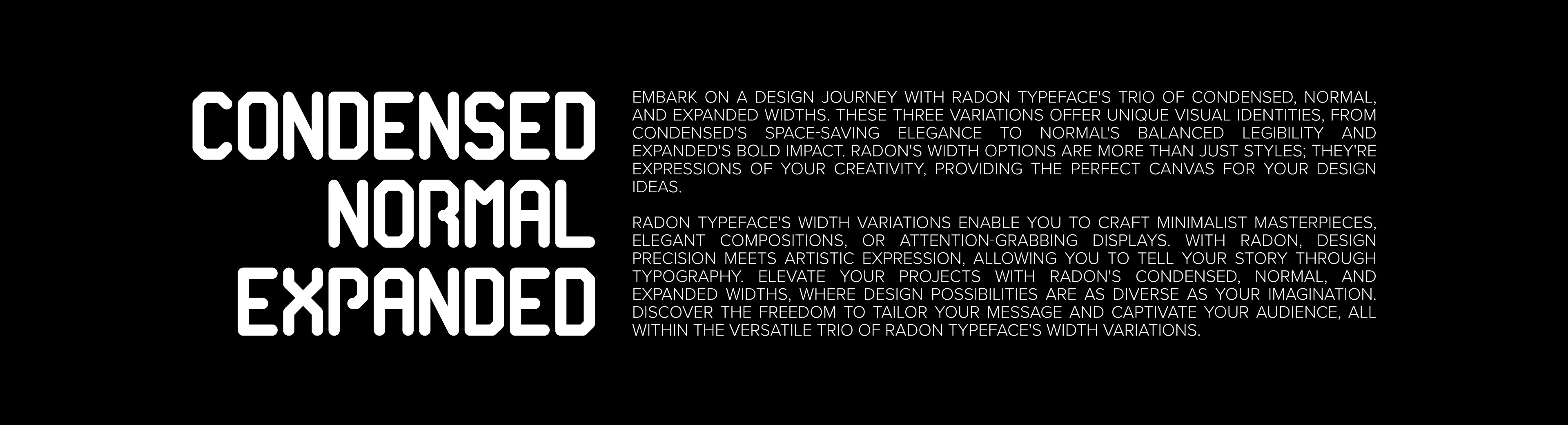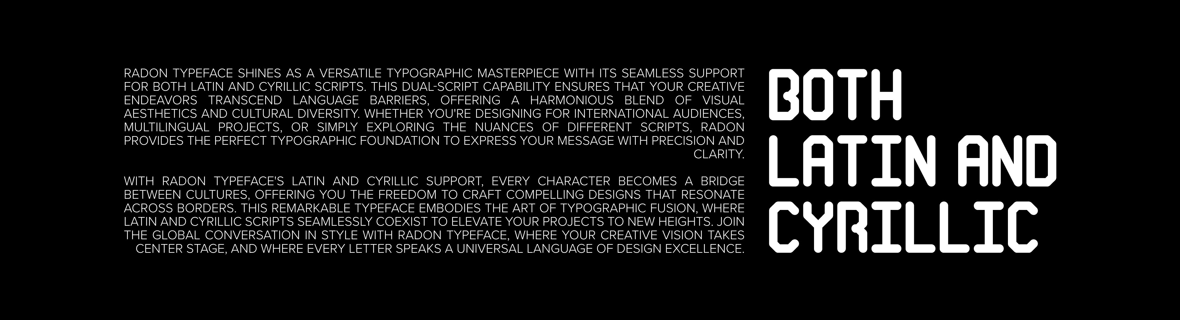 is a monospaced font family, containing 18 styles. The fonts use simple lines to form characters. Having 552 glyphs each, it supports both Latin and Cyrillic. They come in condensed, normal, and expanded widths.